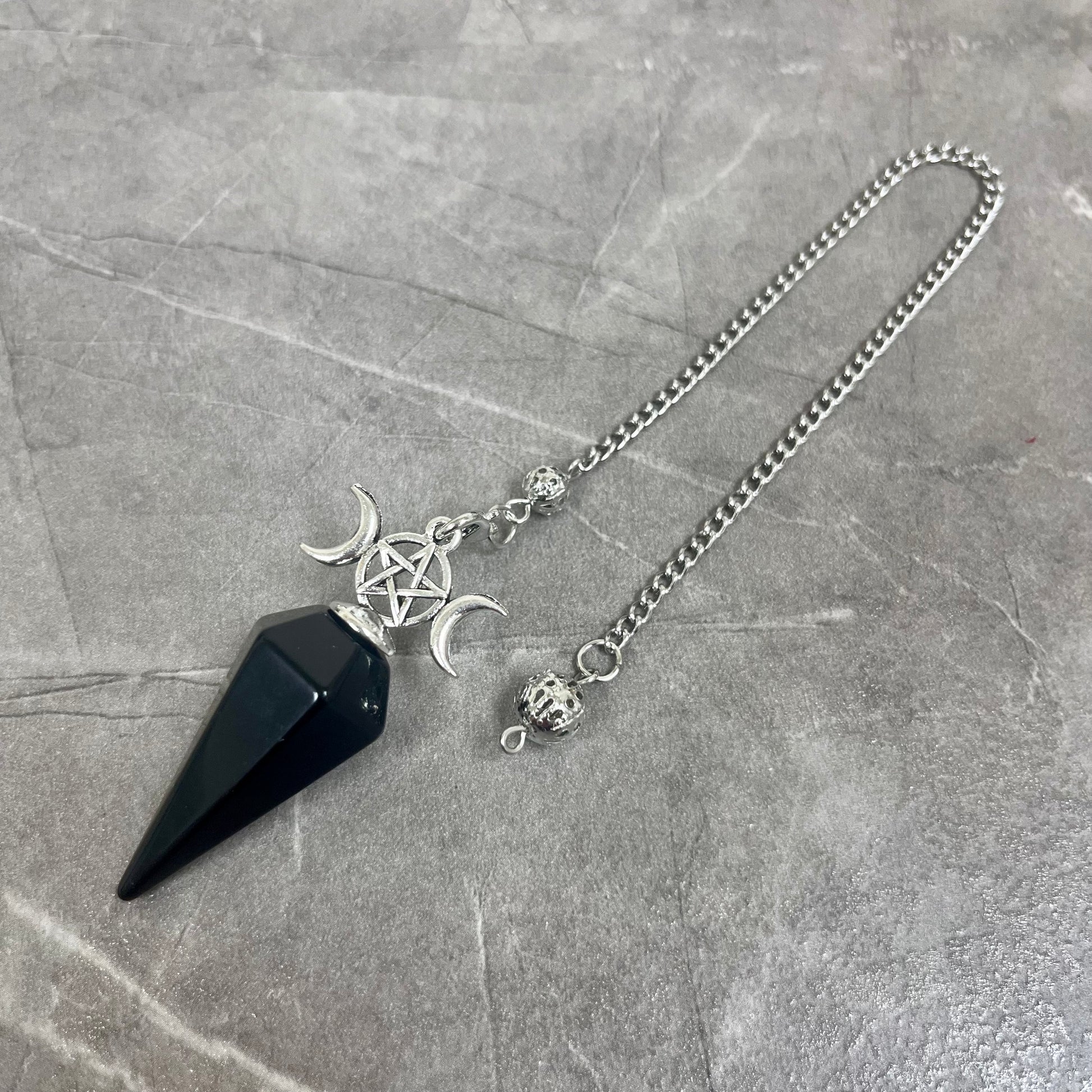 黑曜石 三相月亮 六邊切割形靈擺