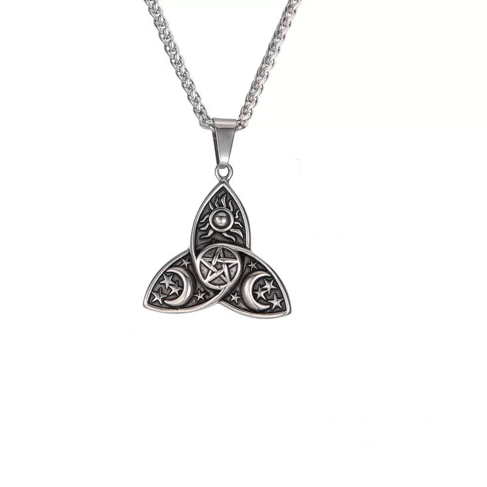 日月星 五芒星 三環結 不鏽鋼 護身符 吊墜 (連金屬項鍊)