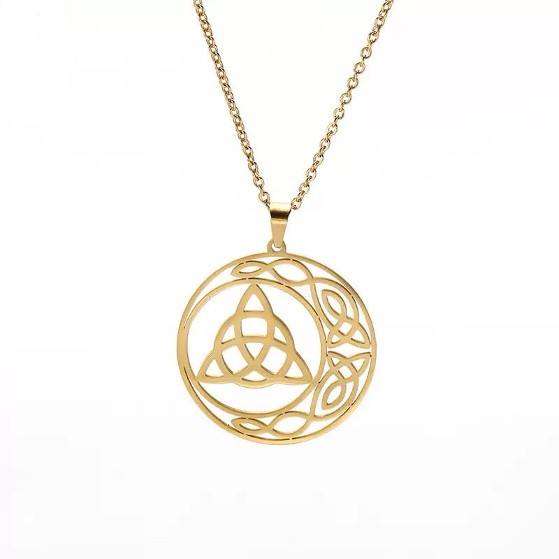 金色 凱爾特月亮 三環結 不鏽鋼 護身符 吊墜 (連金屬項鍊)